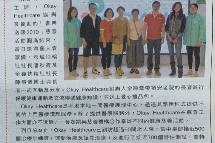 Okay Healthcare 很高興得到東周網報導我們和潔儀姐姐與君域扶輪社合辦的探訪護老院活動。